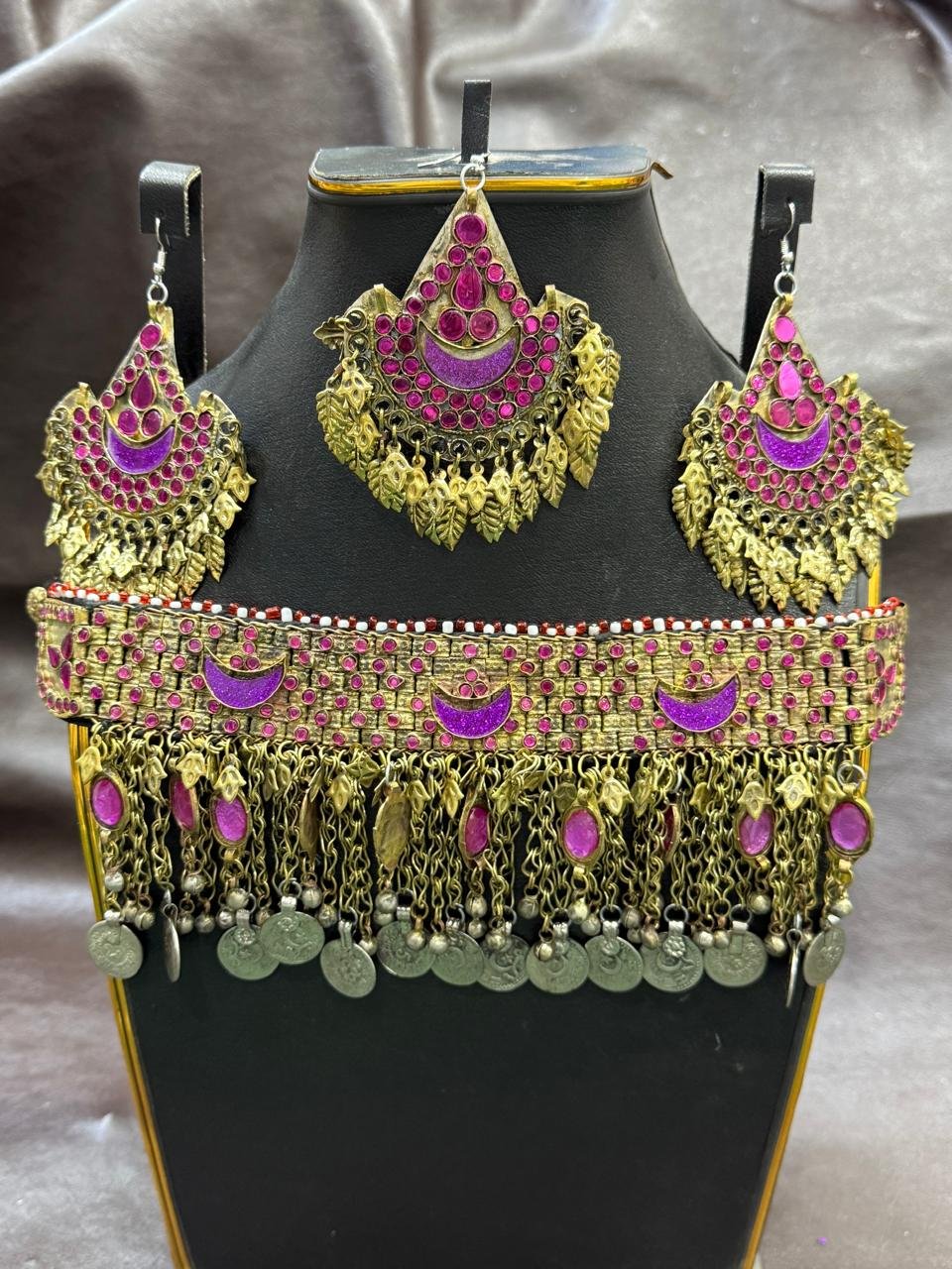 This stunning jewelry set is distinguished by its use of traditional Afghan motifs, often incorporating materials like coins, beads, and stones. Each piece tells a story, making it not just an accessory, but a connection to history and culture.