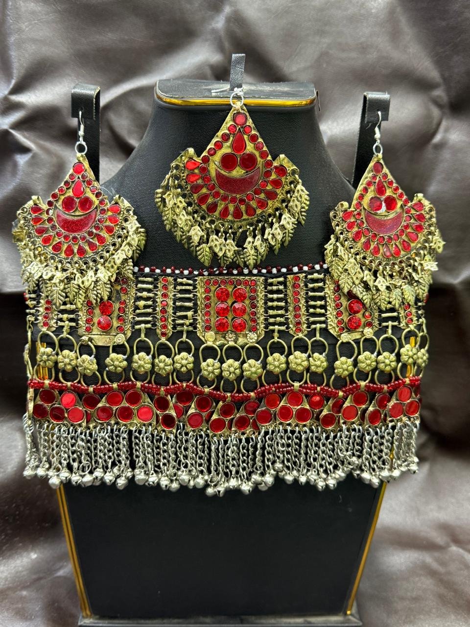 This stunning jewelry set is distinguished by its use of traditional Afghan motifs, often incorporating materials like coins, beads, and stones. Each piece tells a story, making it not just an accessory, but a connection to history and culture.