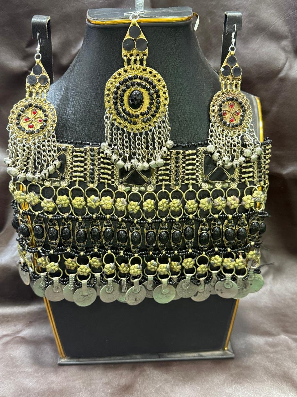 This stunning jewelry set is distinguished by its use of traditional Afghan motifs, often incorporating materials like coins, beads, and stones. Each piece tells a story, making it not just an accessory, but a connection to history and culture.