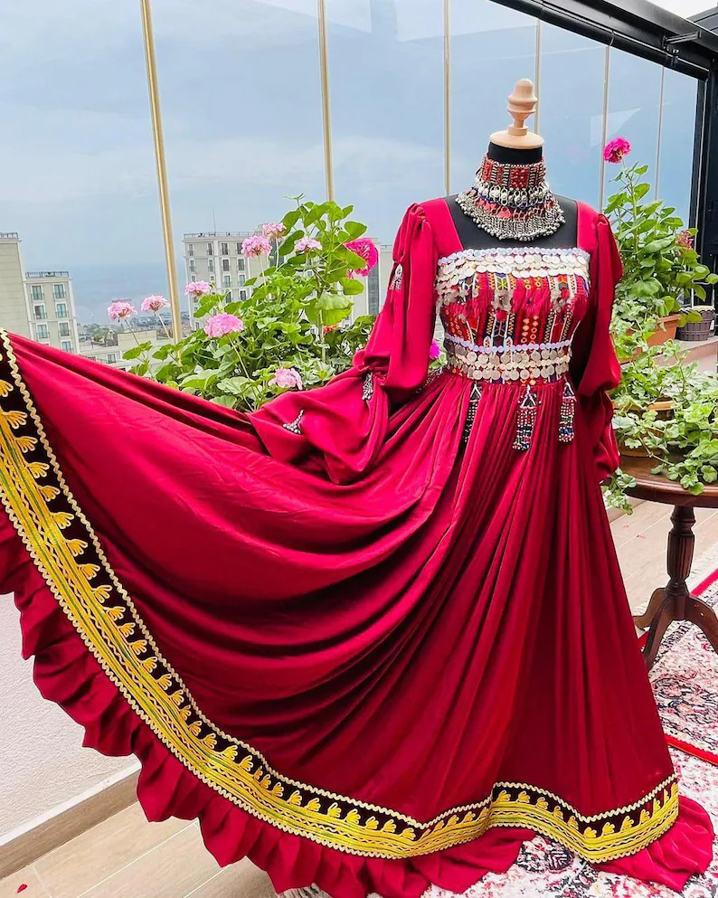Red Afghan Velvet Dress