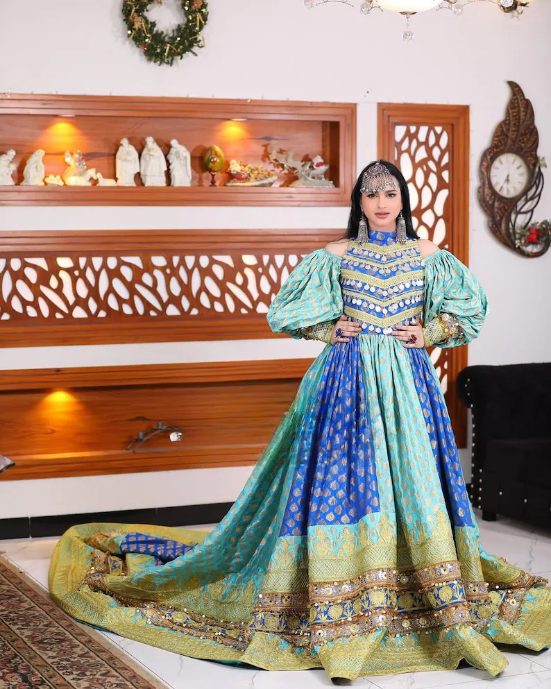 Afghan Long Kochi Dress for Nikah and Henna Parties