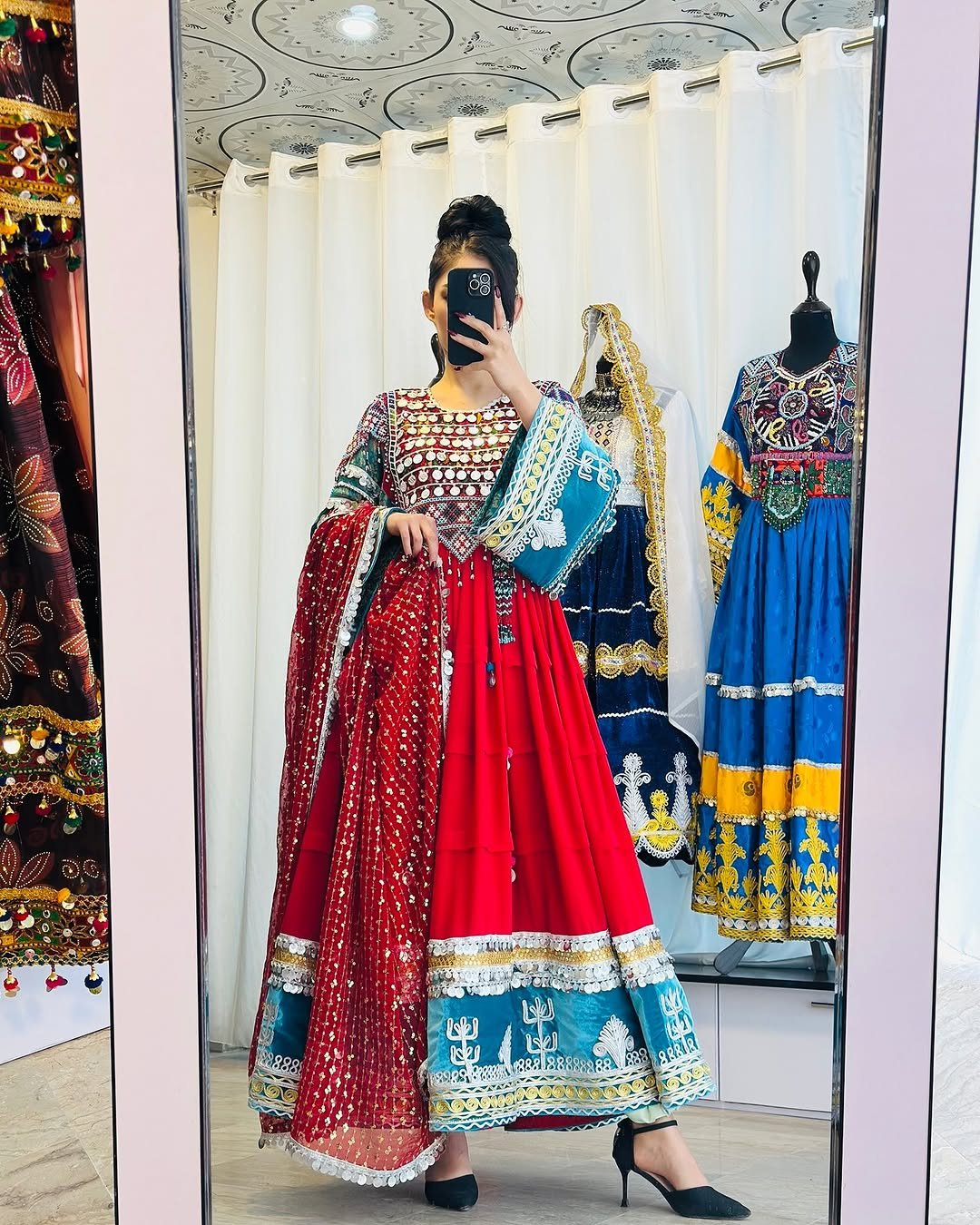 Afghan Red Trading Design Dress – Traditional Elegance with Modern Flair
