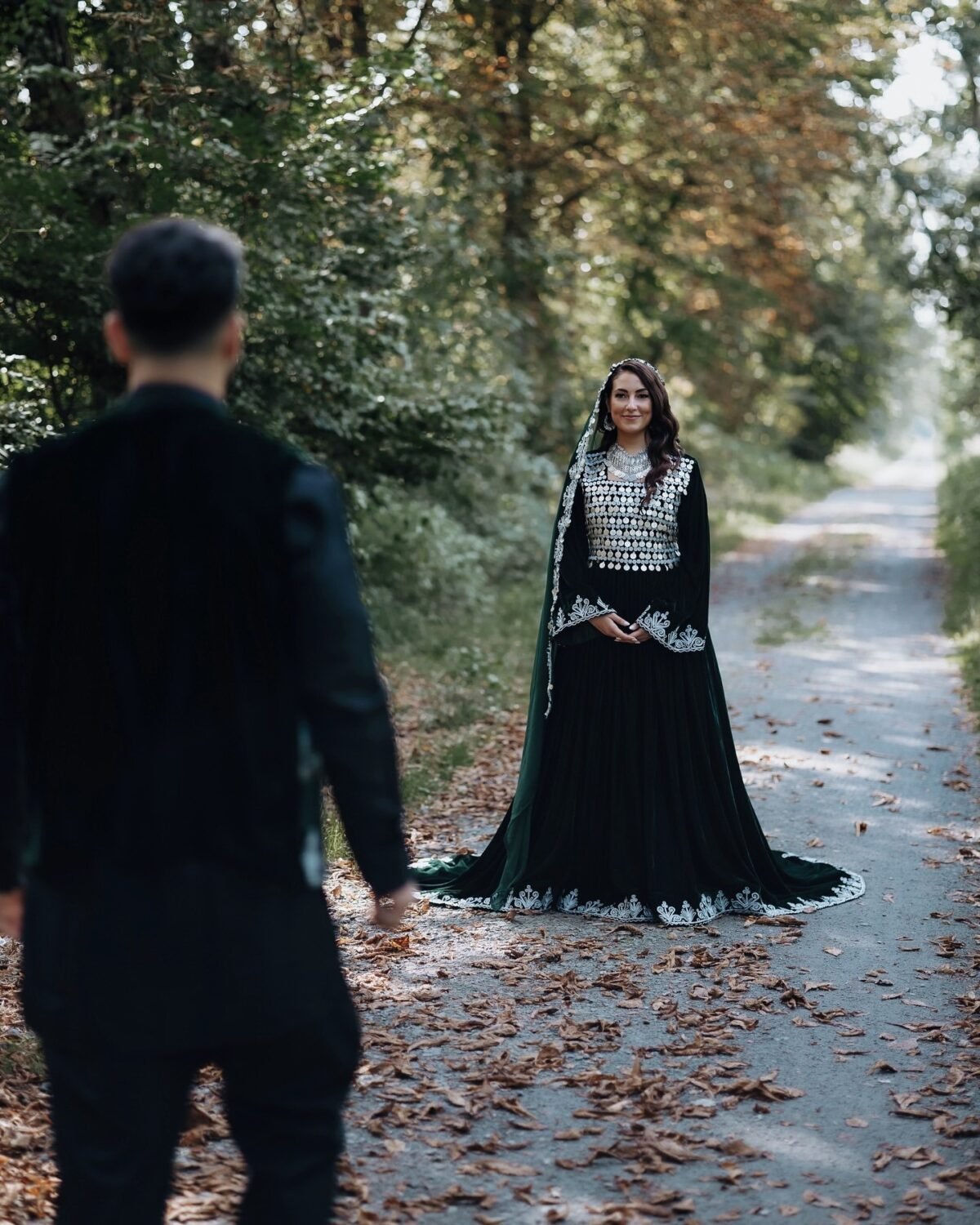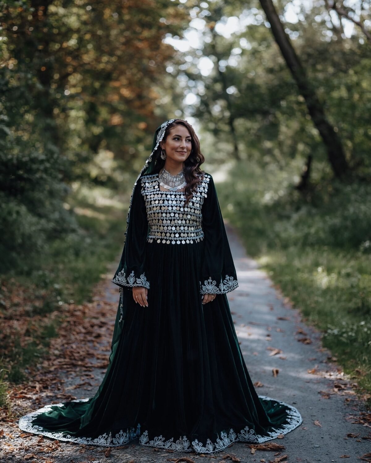 * Intricate Embroidery: Afghan dresses are often adorned with intricate embroidery patterns. Some of these patterns might resemble webbing due to their linear or interconnected designs.