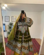 This exquisite green nikkah dress can be complemented with traditional accessories for a complete ethnic look. Whether worn during formal events or family gatherings, it effortlessly highlights the beauty of Afghan heritage.