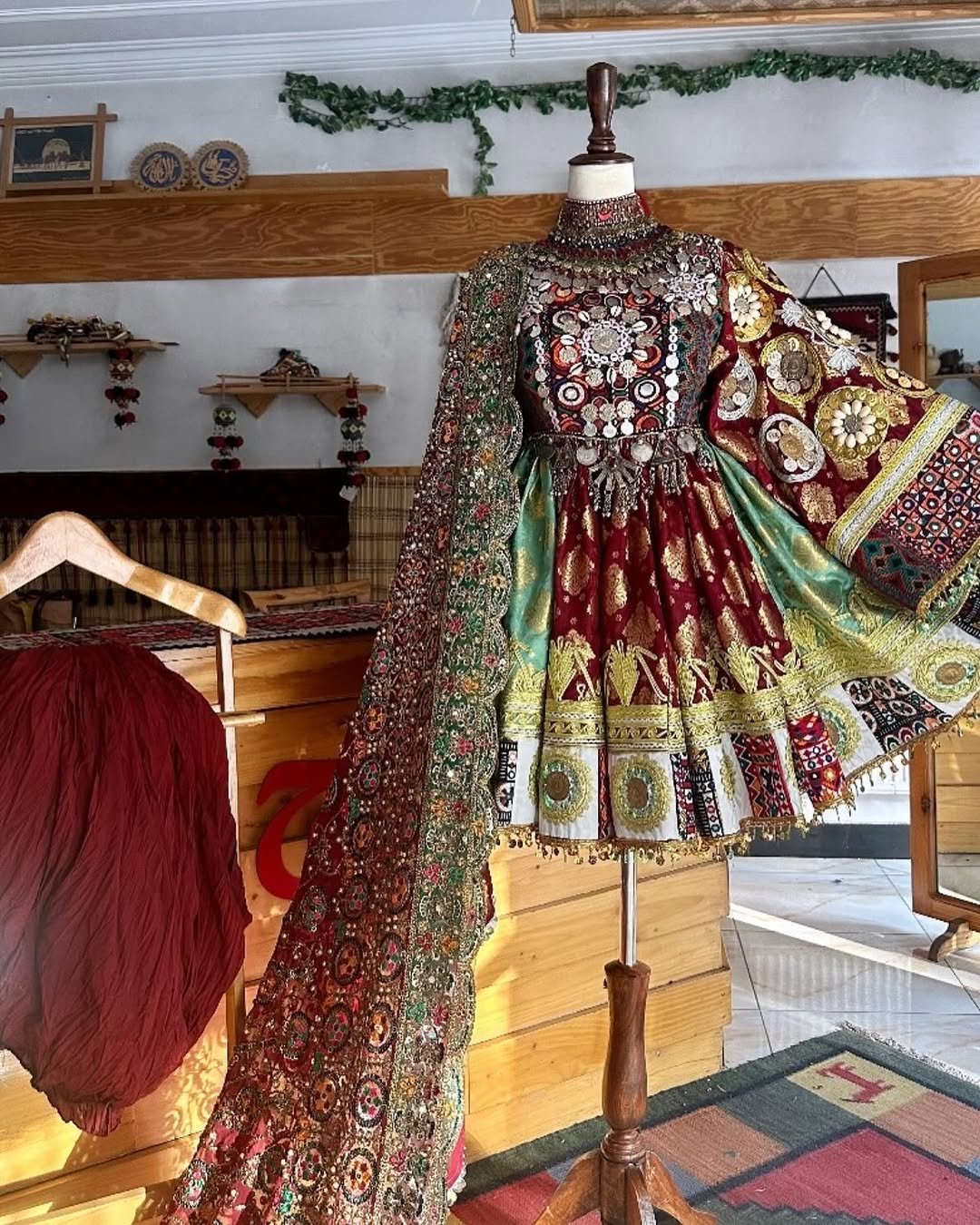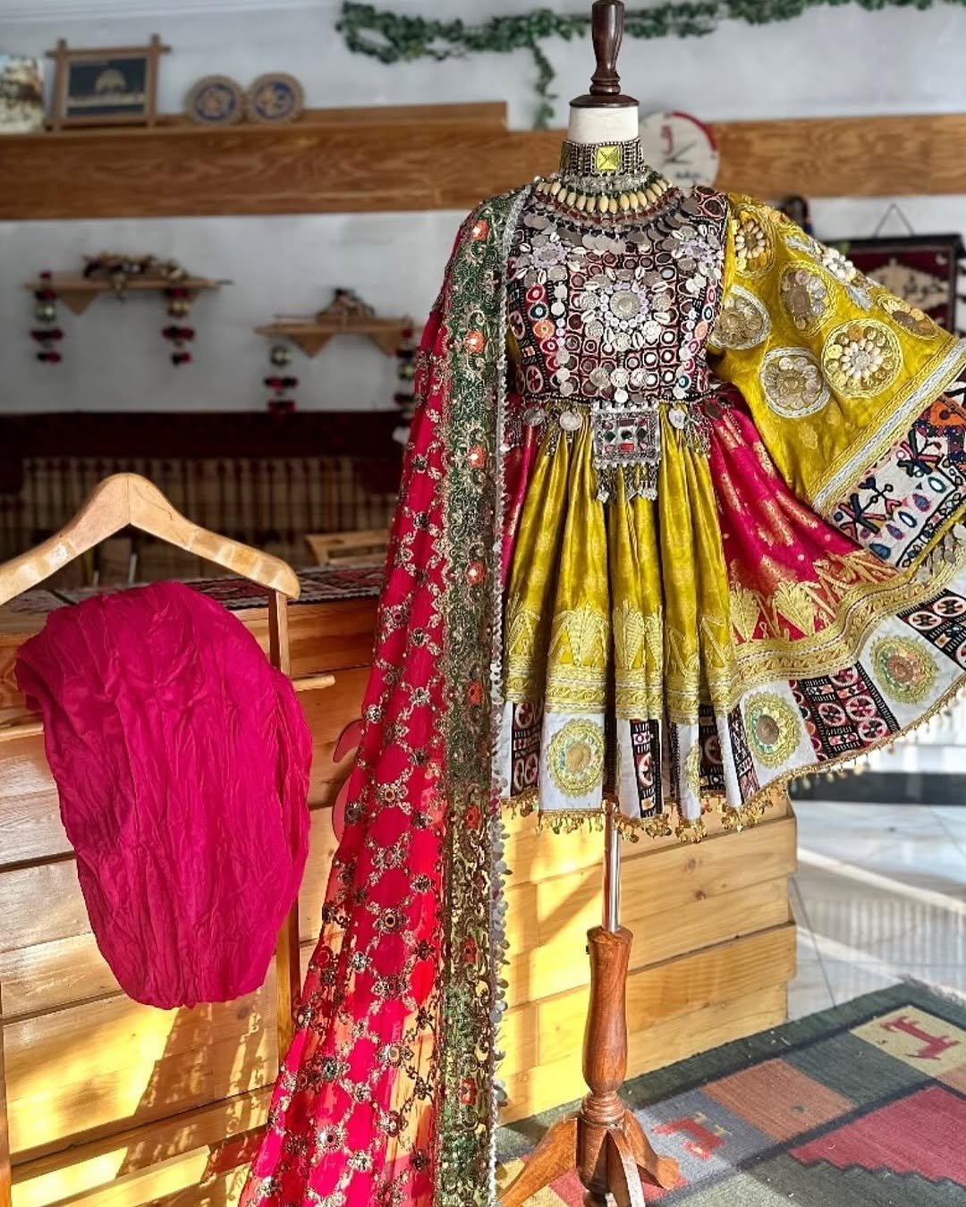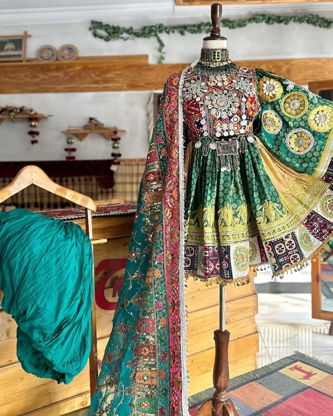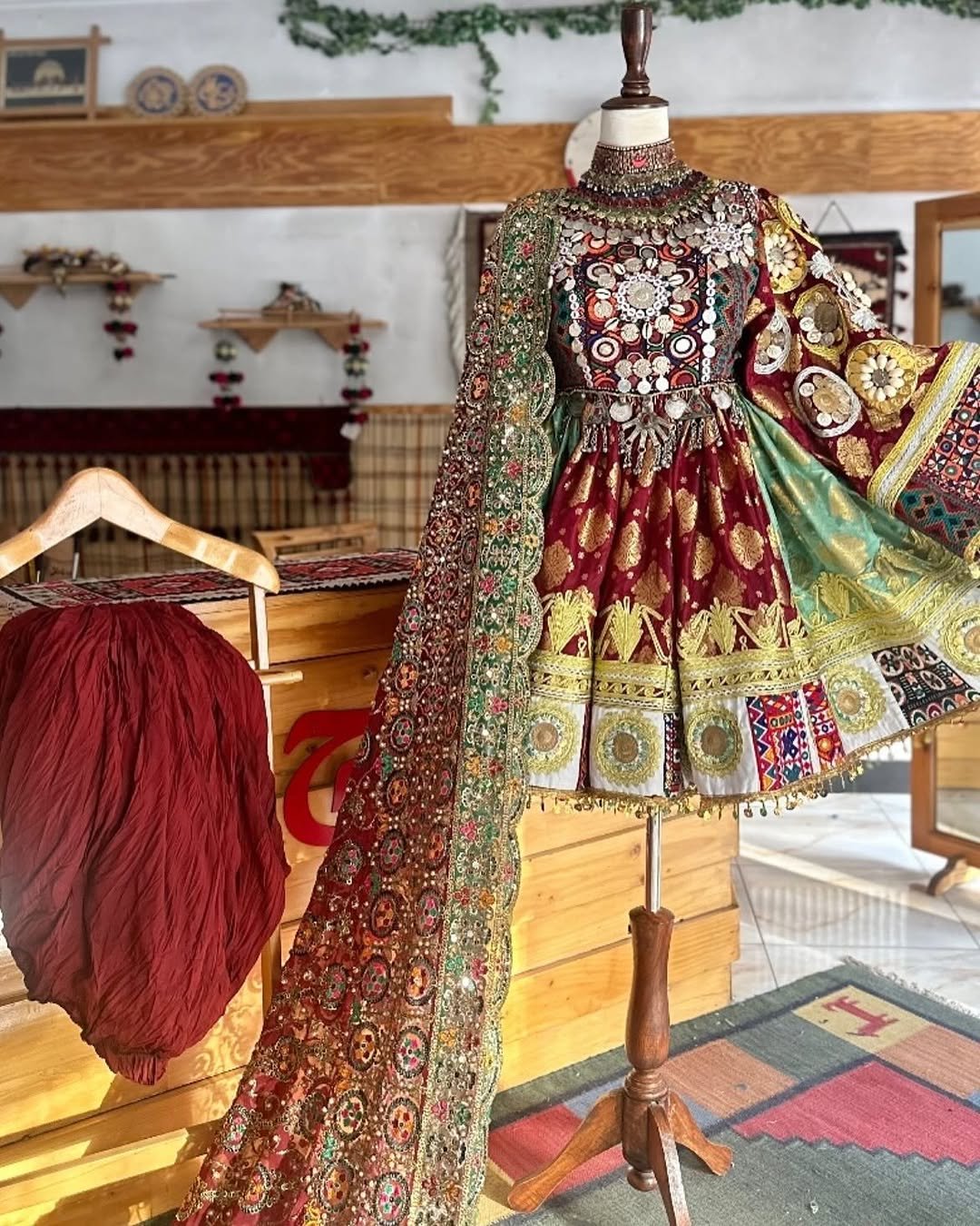 The Traditional Afghan Jama Dress is a stunning example of Afghanistan’s rich cultural heritage, often worn for special occasions such as weddings, festivals, and traditional celebrations. The “Jama” is a long, flowing robe with a fitted bodice and flared skirt, inspired by the royal attire of the Mughal era. It is typically adorned with intricate embroidery, mirror work, and vibrant colors, reflecting the diverse artistic traditions of Afghanistan.