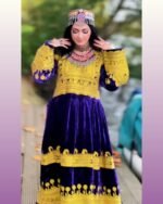 Exquisite Afghan Velvet Dress with Intricate Embroidery